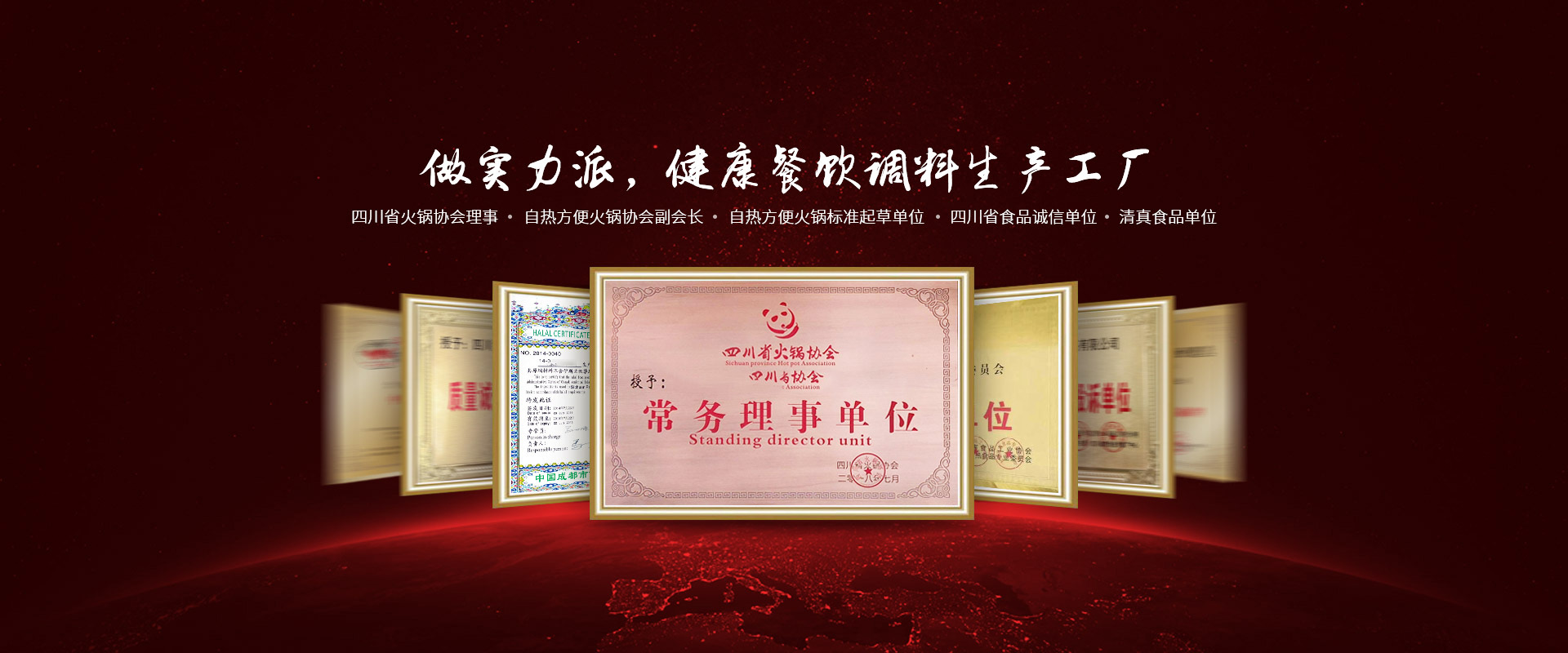 公司率先通过了ISO9001国际质量管理体系认证及ISO22000食品安全管理认证,从配方到原料,从工艺关键点到每一道流程都严格把控,确保食品安全。被评为“四川省火锅协会理事”、“自热方便火锅协会副会长”、“自热方便火锅标准起草单位”、“四川省食品诚信单位”、“清真食品单位”